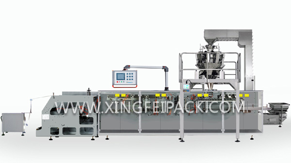 全自動水平式包裝機是一款水平式全自動卷膜成型袋包裝機,是集制袋、計量、灌裝、封口于一體的全新自動包裝機。以熱封性復合膜材料為外包裝,配置各種不同的灌裝頭,可對粉狀、顆粒、液體、粘稠體等不同的物料進行三邊封或四邊封包裝。