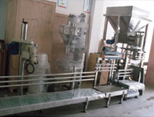 該半自動包裝機能自動完成計量、夾袋、充填、封口、縫包、傳