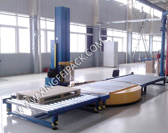 本機用于將伸縮膜纏繞于堆垛在托盤上的產品,防止產品在運輸過程中散落,可防水,防塵,便于運輸和儲存。應用于食品,飲料,化工,五金等行業。